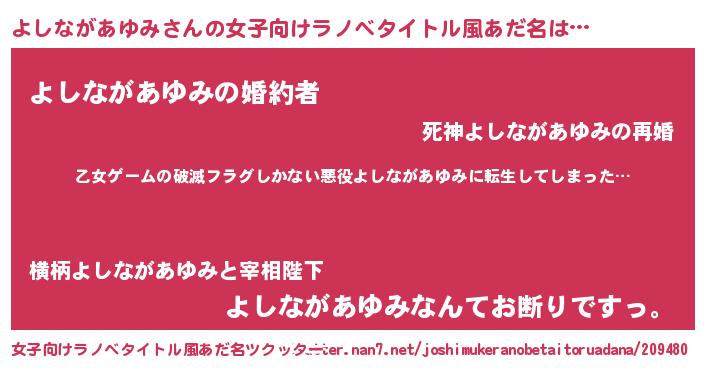 | 意味不明あだ名 | 『住所不定無職よしながあゆみ(59歳)』 |