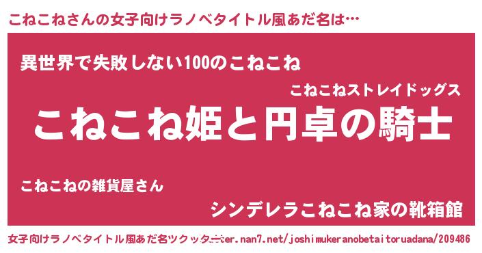 | 男性向けラノベタイトル風あだ名 | 『コネコネアートオンライン』 |