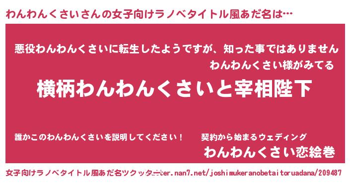 | 意味不明あだ名 | 『住所不定無職わんわんくさい(95歳)』 |