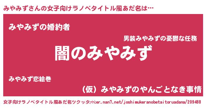 | 男性向けラノベタイトル風あだ名 | 『Re:みやみずから始める異世界生活』 |