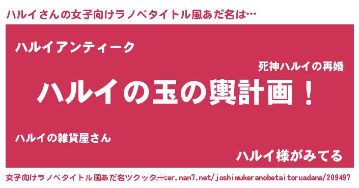| 恥ずかしいあだ名 | 『ハルイデラックス』『ハルリンリン』 |