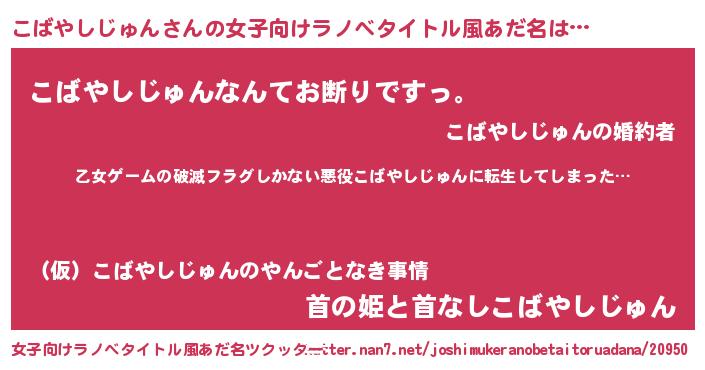 | 意味不明あだ名 | 『住所不定無職こばやしじゅん(91歳)』 |