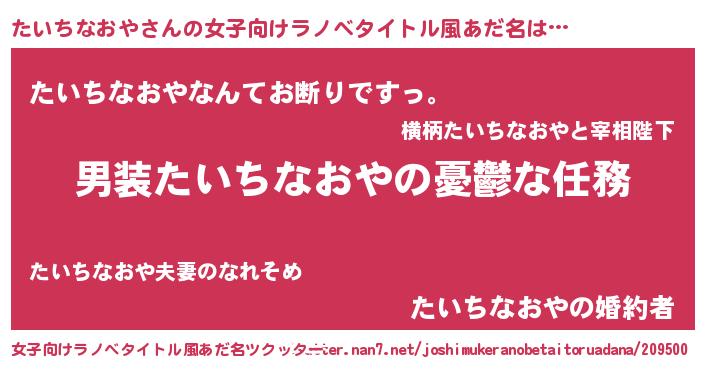 | 男性向けラノベタイトル風あだ名 | 『冴えないたいちなおやの育てかた』 |