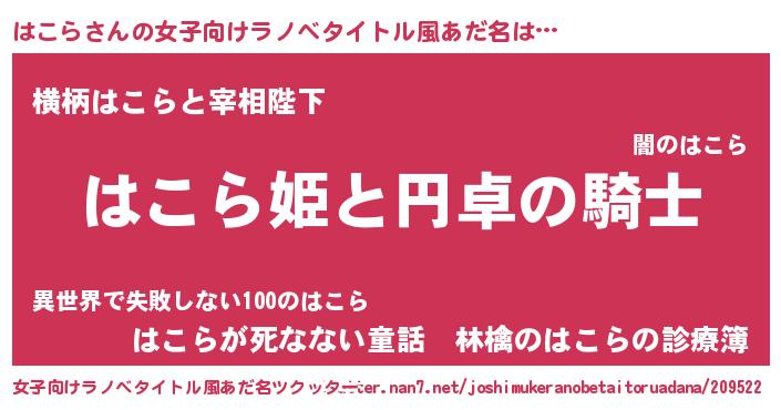 | 男性向けラノベタイトル風あだ名 | 『はこらの憂鬱』『魔弾の王とはこら』 |