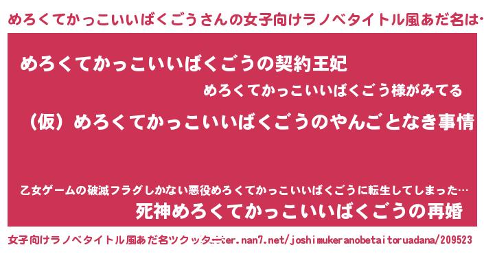 | 男性向けラノベタイトル風あだ名 | 『めろくてかっこいいばくごうの憂鬱』 |