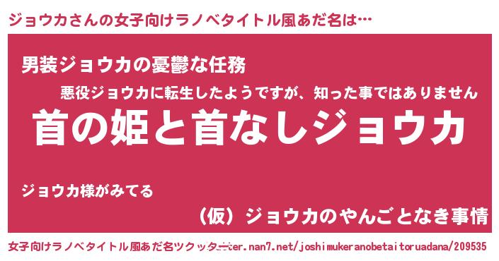 | 胡散臭い通販商品みたいなあだ名 | 『必ず成功するブレスレット…その名も「ジョウカ」』 |