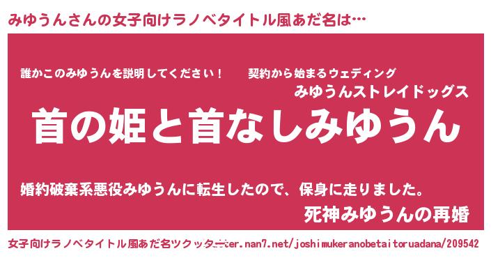 | ヒーロー風カッコイイあだ名 | 『スーパーミユウン』『仮面ミユダー』 |