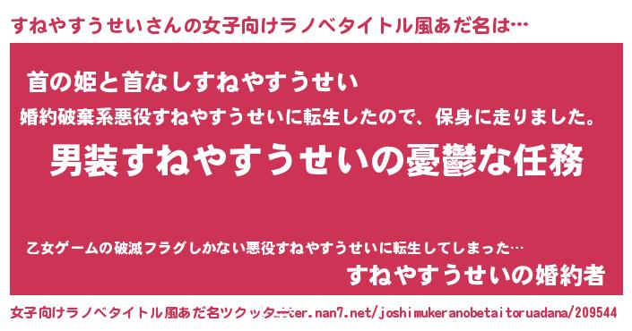 | 胡散臭い通販商品みたいなあだ名 | 『運命の人と巡り会える高級そうな壺…その名も「すねやすうせい」』 |