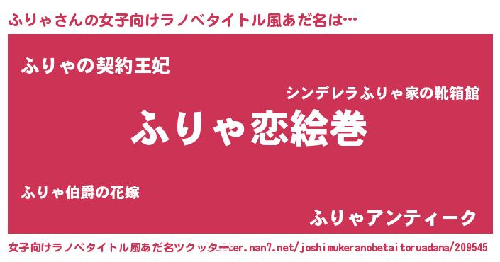 | 男性向けラノベタイトル風あだ名 | 『ノーゲーム・ノーフリャ』 |