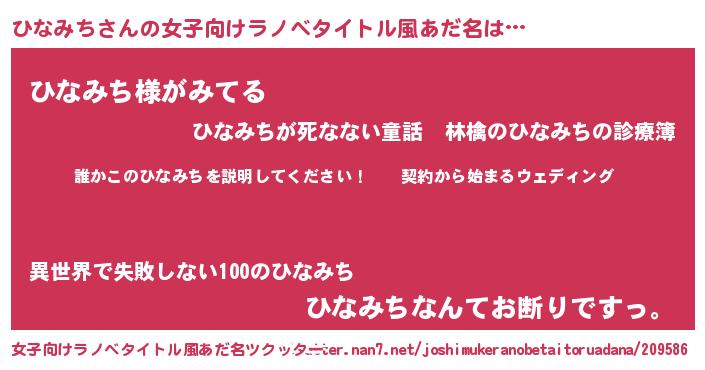 | 男性向けラノベタイトル風あだ名 | 『ヒナミチアートオンライン』 |