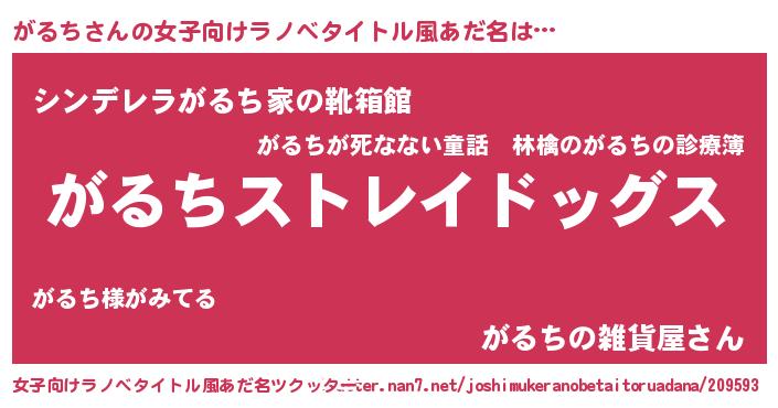 | 男性向けラノベタイトル風あだ名 | 『Re:がるちから始める異世界生活』 |