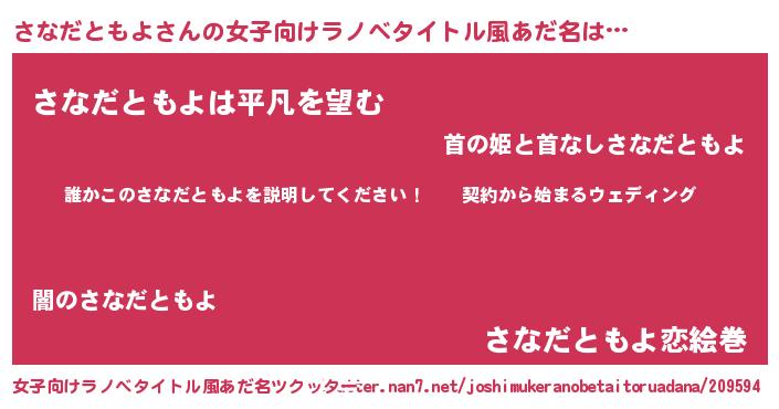 | ヒーロー風カッコイイあだ名 | 『スーパーサナダトモヨ』『暗黒騎士サナ』 |