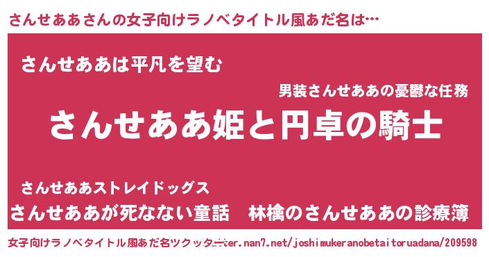 | 男性向けラノベタイトル風あだ名 | 『サンセアアアートオンライン』 |