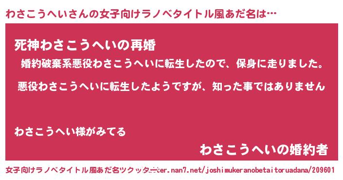 | 意味不明あだ名 | 『住所不定無職わさこうへい(3歳)』 |