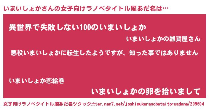 | 胡散臭い通販商品みたいなあだ名 | 『あなたにだけ特別に提供する100年もののヴィンテージワイン…その名も「いまいしょか」』 |