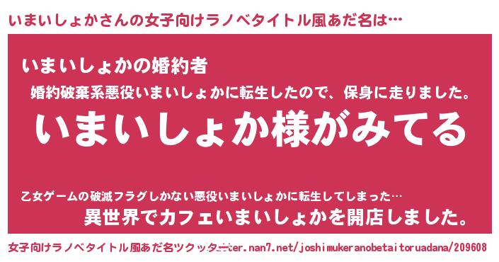 | 男性向けラノベタイトル風あだ名 | 『いまいしょかの嫁は女の子じゃないと思った?』 |