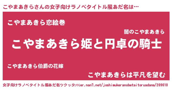 | 男性向けラノベタイトル風あだ名 | 『こやまあきらの憂鬱』 |