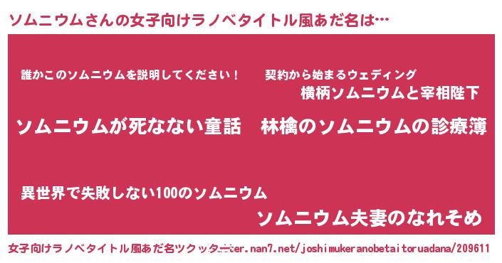| 意味不明あだ名 | 『住所不定無職ソムニウム(8歳)』 |