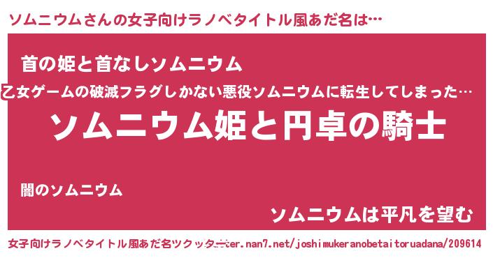 | 男性向けラノベタイトル風あだ名 | 『ソムニウムの憂鬱』 |