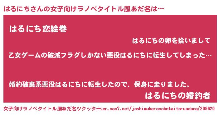 | 男性向けラノベタイトル風あだ名 | 『この素晴らしい世界にはるにちを!』 |