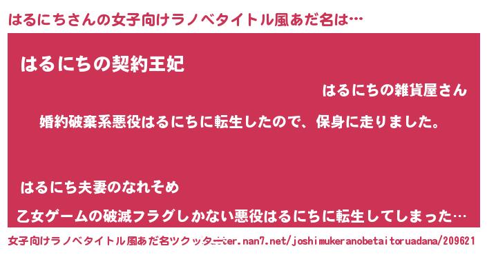 | 男性向けラノベタイトル風あだ名 | 『転生したらはるにちだった件』 |