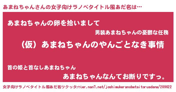 | 胡散臭い通販商品みたいなあだ名 | 『必ず成功するブレスレット…その名も「あまねちゃん」』 |