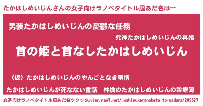 | 男性向けラノベタイトル風あだ名 | 『はたらくたかはしめいじんさま!』 |