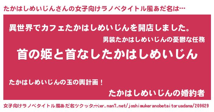 | 意味不明あだ名 | 『永久保存たかはしめいじん』 |