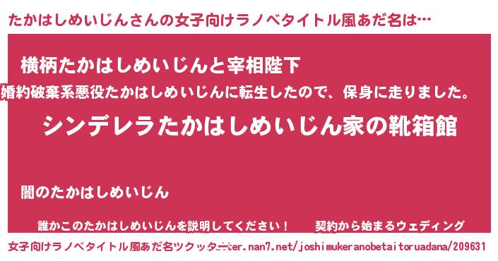 | 男性向けラノベタイトル風あだ名 | 『冴えないたかはしめいじんの育てかた』 |