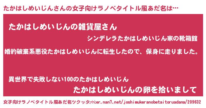 | 胡散臭い通販商品みたいなあだ名 | 『世界が平和になる高級そうな壺…その名も「たかはしめいじん」』 |