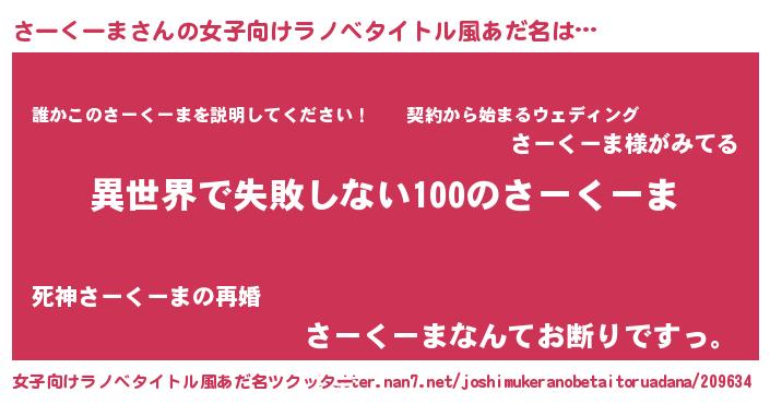 | 男性向けラノベタイトル風あだ名 | 『さーくーまという概念が存在しない退屈な世界 』 |