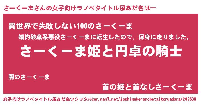 | 男性向けラノベタイトル風あだ名 | 『さーくーまの憂鬱』 |