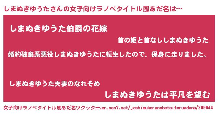| 料理風あだ名 | 『しまぬきゆうたごはん』 |