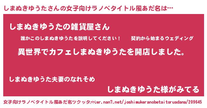 | 男性向けラノベタイトル風あだ名 | 『誰もが恐れるあのしまぬきゆうたが、ぼくの専属メイドになるようです。』 |