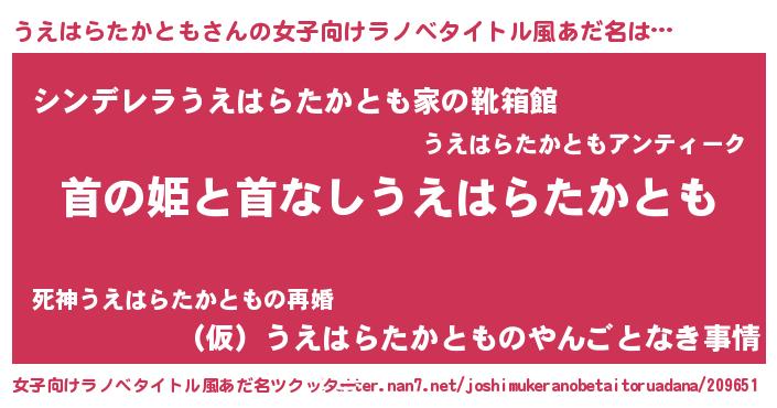 | 胡散臭い通販商品みたいなあだ名 | 『必ず成功するブレスレット…その名も「うえはらたかとも」』 |