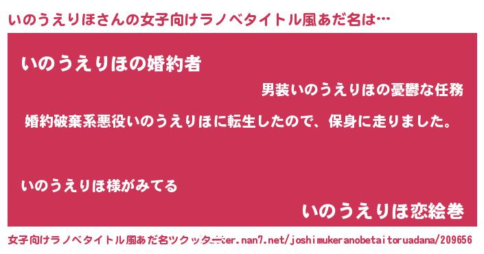 | 男性向けラノベタイトル風あだ名 | 『転生したらいのうえりほだった件』 |
