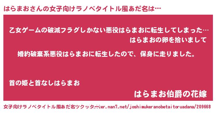 | 胡散臭い通販商品みたいなあだ名 | 『ハリウッド女優が絶賛した100年もののヴィンテージワイン…その名も「はらまお」』 |