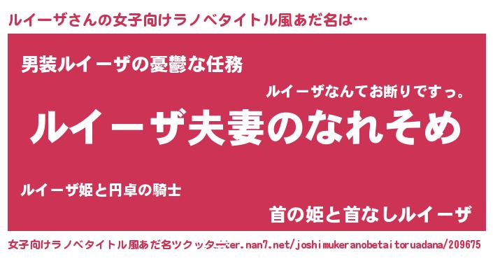 | 男性向けラノベタイトル風あだ名 | 『おまえをオタクにしてやるから、俺をルイーザにしてくれ! 』 |