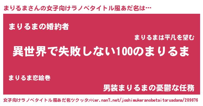 | 男性向けラノベタイトル風あだ名 | 『まりるまという概念が存在しない退屈な世界 』 |