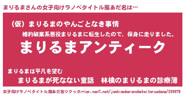 | 肩書あだ名 | 『まりるま閣下』『まりるま社長令嬢』 |