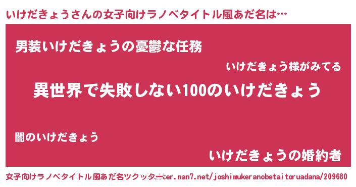 | 男性向けラノベタイトル風あだ名 | 『いけだきょうという概念が存在しない退屈な世界 』 |