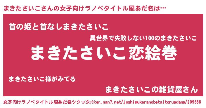 | 胡散臭い通販商品みたいなあだ名 | 『お金では代えられない隕石のかけら…その名も「まきたさいこ」』 |