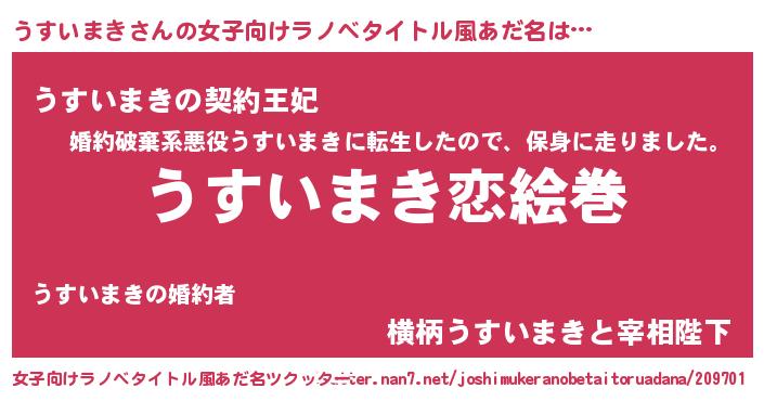 | 男性向けラノベタイトル風あだ名 | 『ノーゲーム・ノーウスイマキ』 |