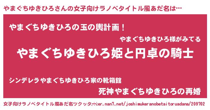 | 胡散臭い通販商品みたいなあだ名 | 『モテモテ間違いなし霊験あらたかなお札…その名も「やまぐちゆきひろ」』 |