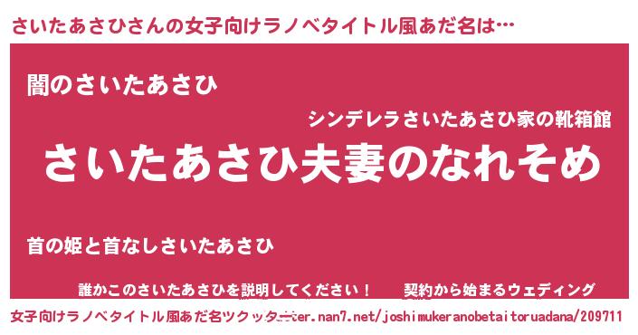 | ヘコむあだ名 | 『さいにゅー』『さいたあさひ(小並感)』 |