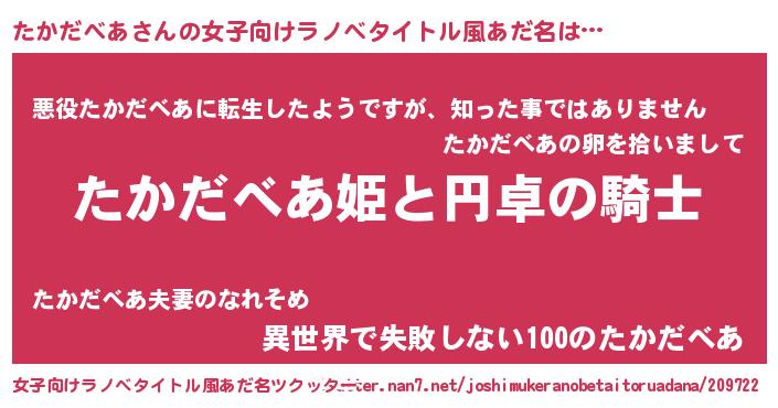 | 胡散臭い通販商品みたいなあだ名 | 『モテモテ間違いなし水晶球…その名も「たかだべあ」』 |