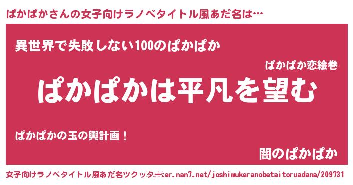 | 男性向けラノベタイトル風あだ名 | 『ダンジョンにぱかぱかを求めるのは間違っているだろうか』 |