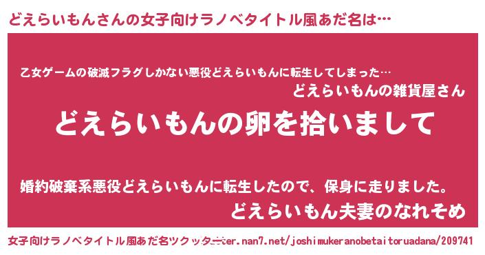 | 男性向けラノベタイトル風あだ名 | 『ダンジョンにどえらいもんを求めるのは間違っているだろうか』 |