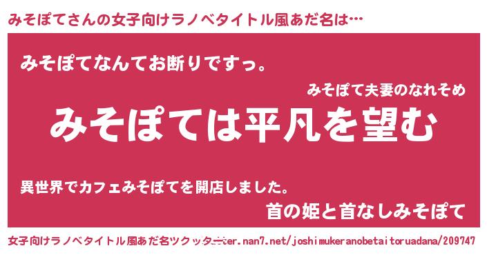 | 胡散臭い通販商品みたいなあだ名 | 『信頼と実績のペンダント…その名も「みそぽて」』 |