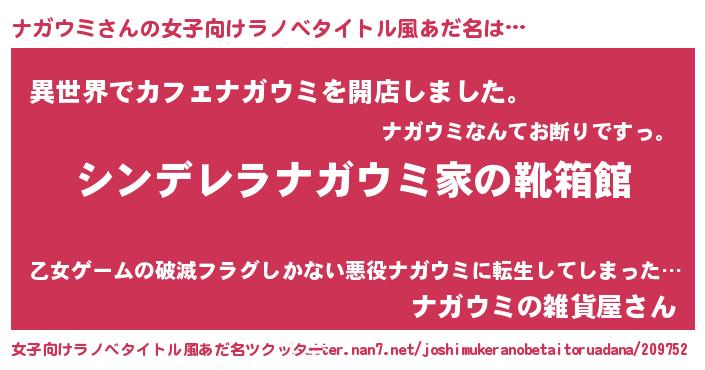 | 男性向けラノベタイトル風あだ名 | 『冴えないナガウミの育てかた』 |